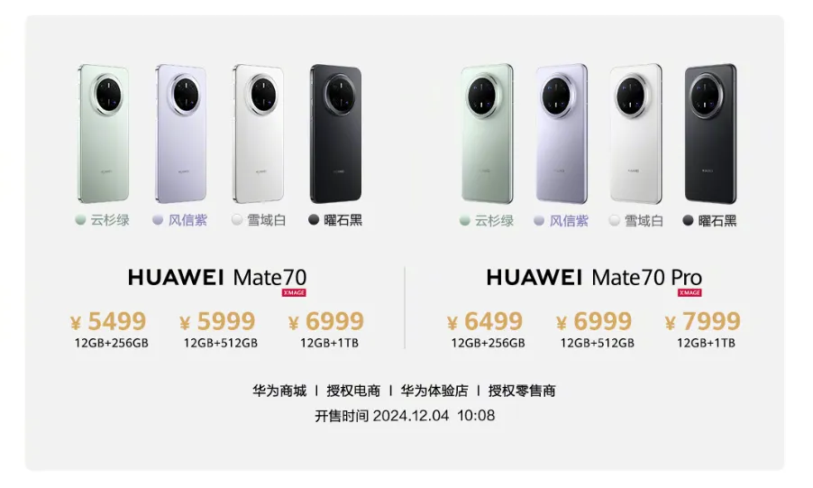 Mate 70系列售价5499元起,Mate X6起售价12999元。