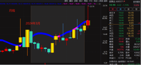 那信雅达呢,它有没有这种长期蓄力的趋势?信雅达的月线从 2024 年 3 月开始调整,到现在还不到两年,月线趋势上不符合咱们说的这种情况。