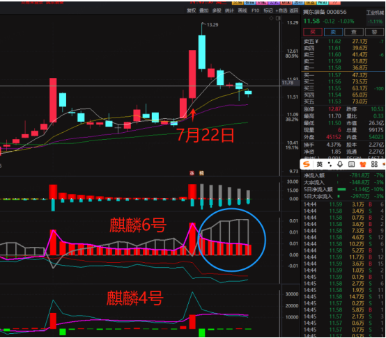 可咱看冀东装备,涨停之后股价不是往上走,反而是震荡着往下落。五绝回踩最差的情况,也得是股价在涨停大阳实体 50% 的位置上面盘整,这才能说还有点反弹的希望。7 月 22 日那涨停大阳,50% 的位置大概是 12 元,11.78 元明显在这下面,你说这反弹的希望还大吗?