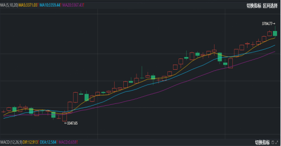 今天市场开盘就往上冲,可能是昨日情绪延续,沪市最高摸到 3704 点附近。可到了中午,突然就掉下来了,后来类金融板块出来护盘,但大盘以跌势收盘。