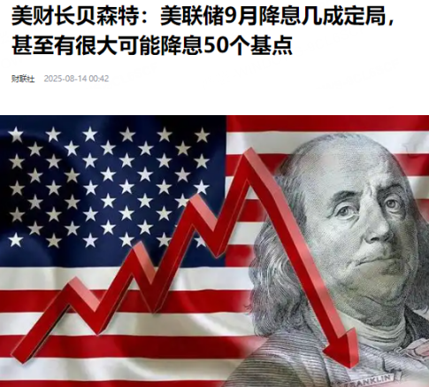 周三美国财长贝森特放话了,说最近就业数据太拉胯,美联储 9 月很可能大降 50 个基点利率。