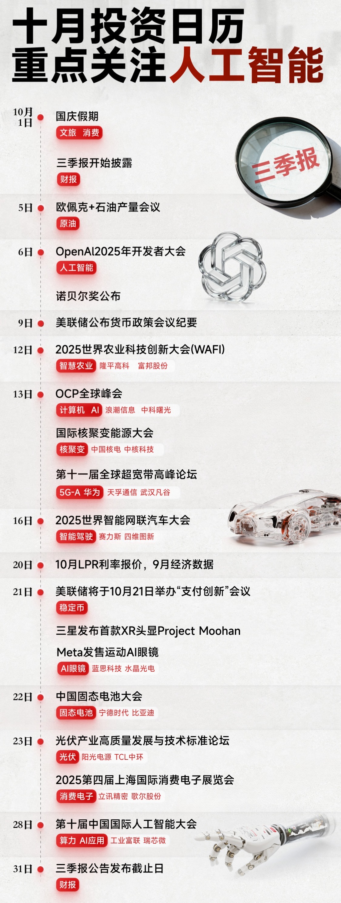 10 月投资日历来了!重要会议召开,AI等板块要重点关注!