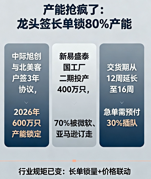 2. 产能抢疯了:龙头签长单锁80%产能,交货期拖到16周