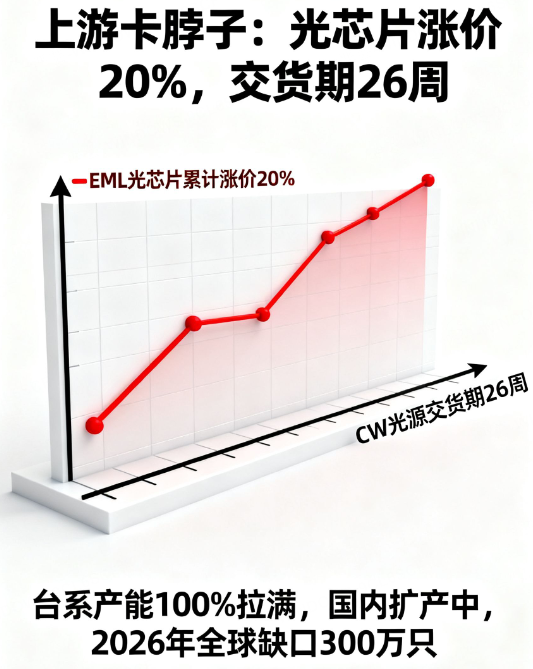 2. 上游卡脖子:CW光源缺到2026年,光芯片已涨价20%