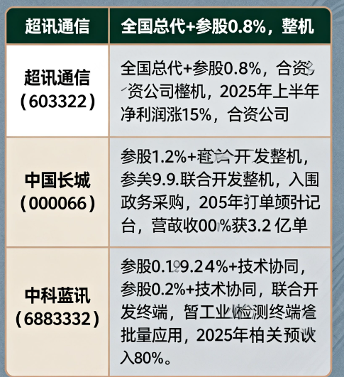 • 神州数码(000034):分销合作伙伴,适配金融、电信行业,2025年Q4批量交付,目标销售额5亿元;还做整机集成,单机利润约8000元。