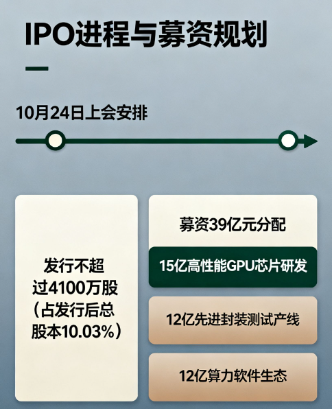 根据上交所公告,沐曦10月24日就接受科创板上市委审议了。这次计划发行不超过4100万股,占发行后总股本的10.03%,募集的39亿元早有明确去向:15亿砸向高性能GPU芯片研发,12亿建先进封装测试产线,12亿搞算力软件生态。值得一提的是,沐曦2024年研发投入占比高达35.7%,比行业平均的20%高出一大截,技术突破不是靠运气。