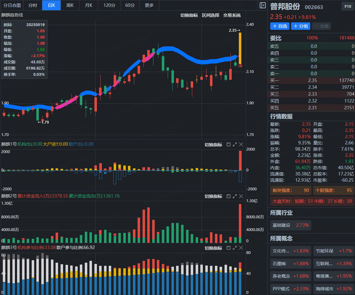 普邦股份 002663(五绝一买战法)