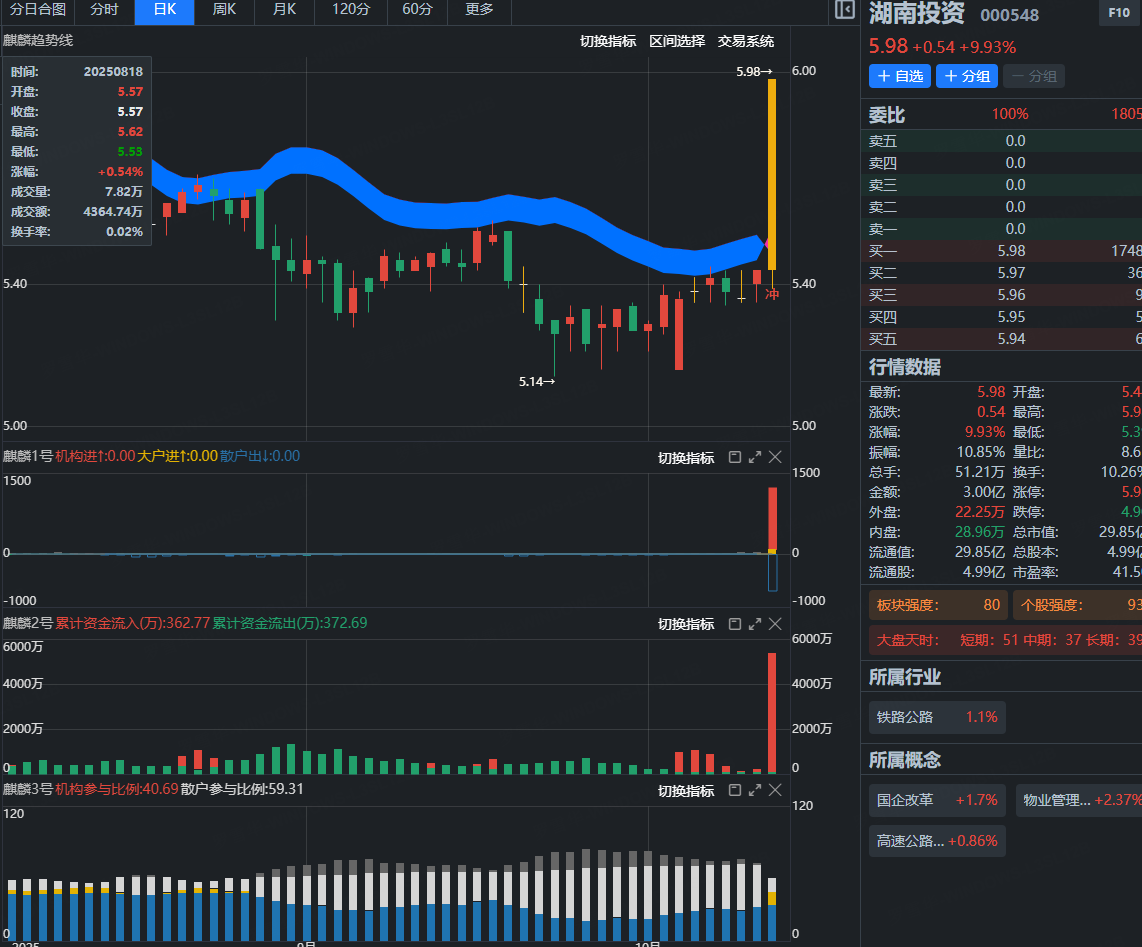 湖南投资 000548(五绝一买战法)