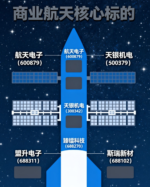 1. 商业航天核心标的: