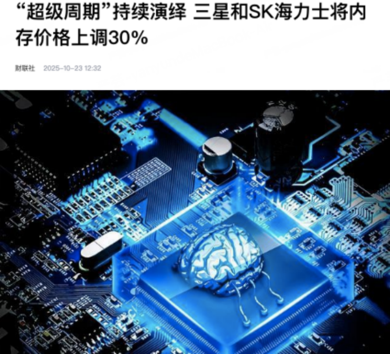 然后,存储芯片那边有个大消息。三星电子和SK海力士这些存储芯片巨头,要把存储产品的价格上调30%。这可不是个小数目啊!为啥要涨价呢?因为现在人工智能发展得太火了,对存储芯片的需求一下子就激增了。摩根士丹利还预测,在人工智能的热潮下,存储芯片行业要迎来“超级周期”。这就意味着,以后存储芯片的市场会很不错,相关企业的利润可能会大幅增加,所以大家就都看好半导体板块,纷纷买入,股价就涨起来了。