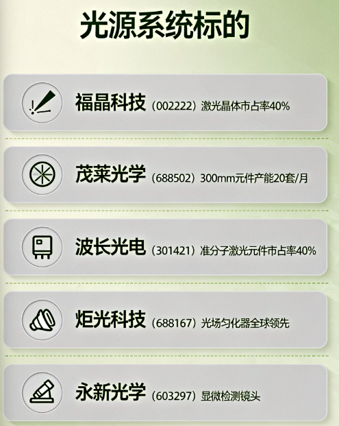 光学元件:茂莱光学 300mm 投影物镜月产能提升至 20 套,交付周期从 18 个月压缩至 12 个月;
