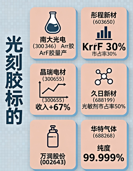 光刻胶:北大技术突破叠加标准落地,晶瑞电材 KrF 光刻胶订单排至 2026 年 Q1,产能利用率超 95%;