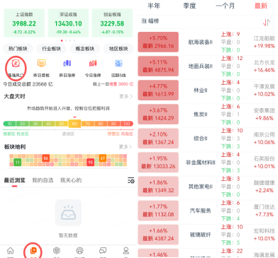 在APP,找到【自选】界面,找到【最强风口】,可以看到当日热点板块以及强度。