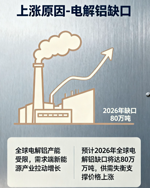 国内电解铝产能受 “4500 万吨红线” 约束,新增产能有限;华泰证券预测 2026 年全球需求增速 2.3%,供需缺口将扩至 80 万吨,LME 铝价目标上调至 3200 美元 / 吨以上,带动铝企股价大幅冲高。