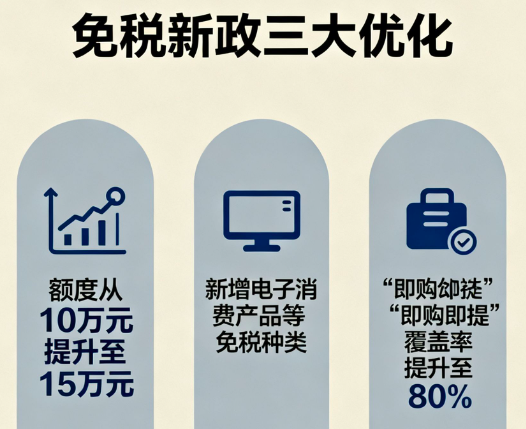 • 每人每年免税购物额度从10万元提至15万元