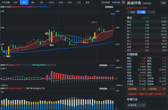 该股股价从9月29日波段见顶2.67以来,进入箱体强震荡走势,期间有1个向上拐点K线和1个长阳爆点K线形态,实现三期共振向上;板块强度81而个股强度92;结合麒麟指标6号连续红柱,表明主力资金实现了高度控盘特征,3号显示机构持仓比例超过4成;结合战法规则,短期我们可考虑回踩靠近红线,通过盘中确认功能结合个股强度,寻找合适参与机会。