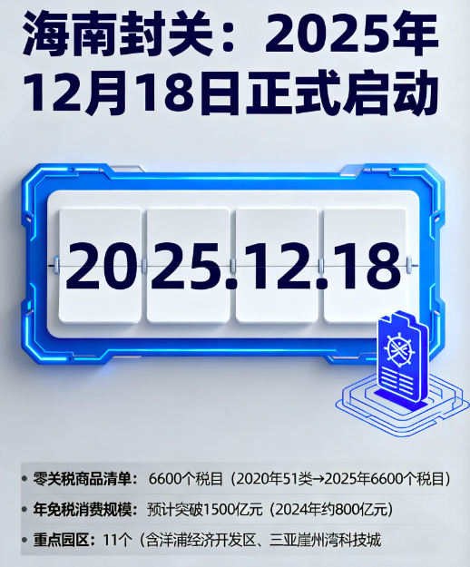 海南自由贸易港全岛封关运作已进入冲刺阶段,将于2025年12月18日正式启动。这是中国迄今为止最大规模的海关特殊监管区域改革,封关后将实现"一线放开、二线管住"的管理模式,境外商品进入海南无需缴纳关税,岛内居民可直接购买零关税商品,企业也将享受更低的税收成本。