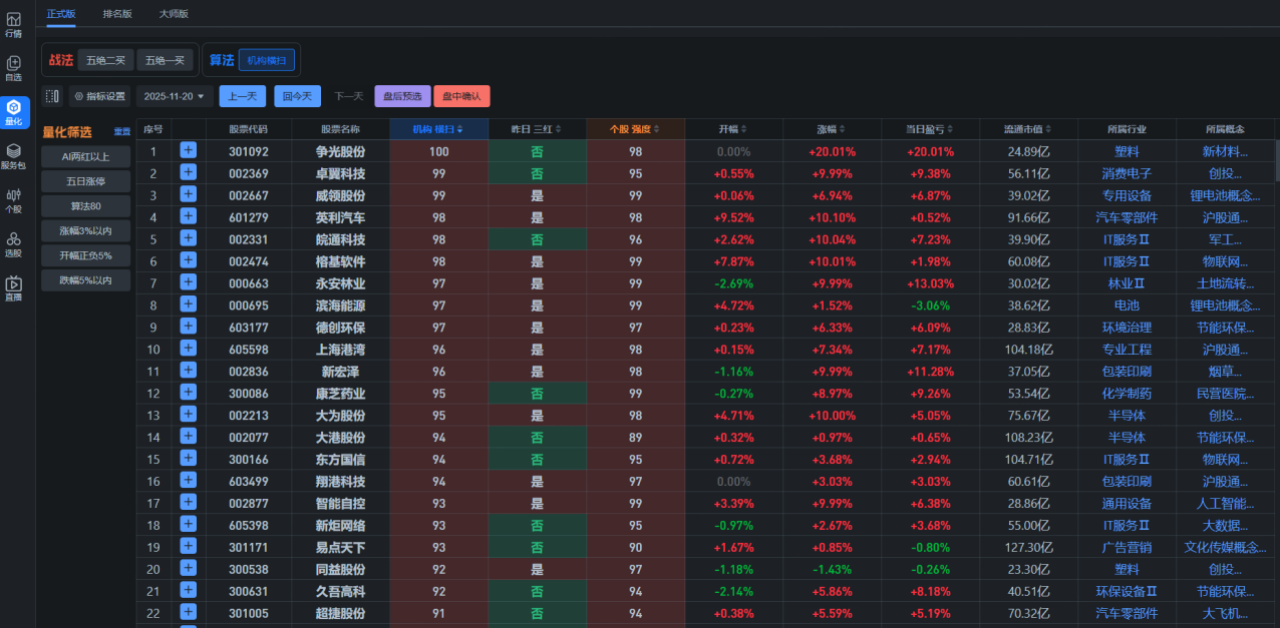因此,大家也还是不要忘记了,今儿收盘后用【AI工具】把那些站上符合五绝战法的个股挑出来,加入自选,然后明天,就让AI量化工具盯紧点,出现了五绝战法买入信号,就考虑是否介入就行。