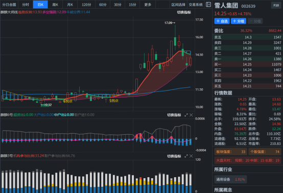 对于雪人集团,我们先根据Ai量化五维共振体系技术对近期走势做一个分析: