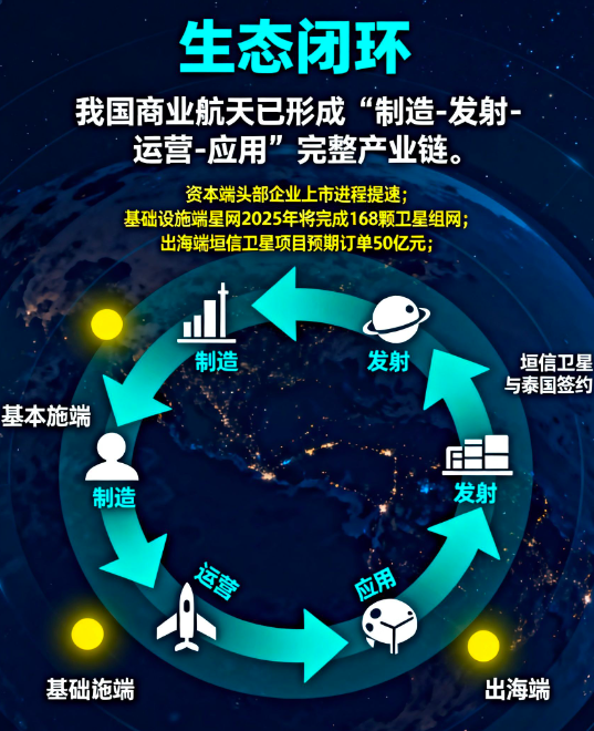 我国商业航天已形成“制造-发射-运营-应用”完整产业链,生态闭环加速成型。