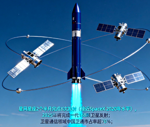 行业增长信号明确:星网星座2个半月完成8次发射,频率接近SpaceX 2020年水平,标志我国低轨卫星进入批量部署阶段,2025年将完成一代168颗卫星发射;卫星通信领域中国卫通市占率超70%,凸显头部优势。