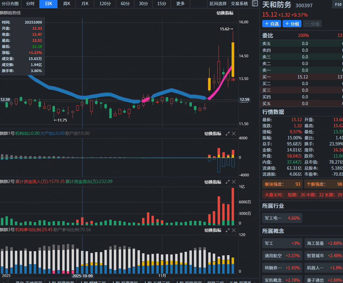 该股经过两个月横盘震荡之后,今日日线再次低位大阳穿麒,个股强度96,结合上麒麟指标1号主力牢牢控盘,2号资金净流入,3号目前机构持仓比例不断增加,结合战法规则,明天我们通过盘中确认功能结合个股强度,寻找合适参与机会。