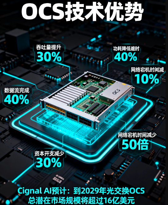 对产业链而言,这意味着一场规模空前的投资盛宴。Cignal AI预计到2029年,光交换OCS的总潜在市场规模将超过16亿美元。而TPU出货量预计从2025年的1.2万台飙升至2030年的30万台,年复合增长率高达78%。