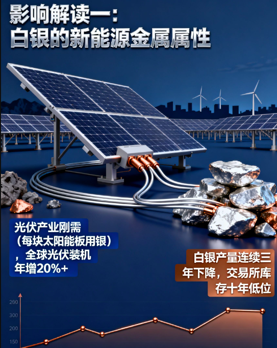 以前大家买白银都是当贵金属避险,现在不一样了!白银在光伏产业中是刚需,每块太阳能板都要用到白银。全球光伏装机量每年增长20%以上,白银的工业需求跟着水涨船高。