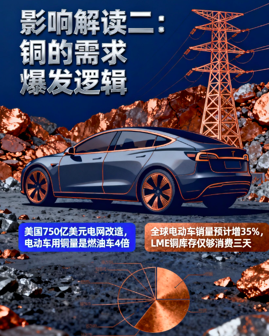 铜价为什么这么疯?看看美国的基建计划就知道了,光电网改造就要花750亿美元,这得用多少铜?新能源车更不用说,一辆电动车用铜量是燃油车的4倍,全球电动车销量今年预计增长35%,铜的需求能不涨吗?