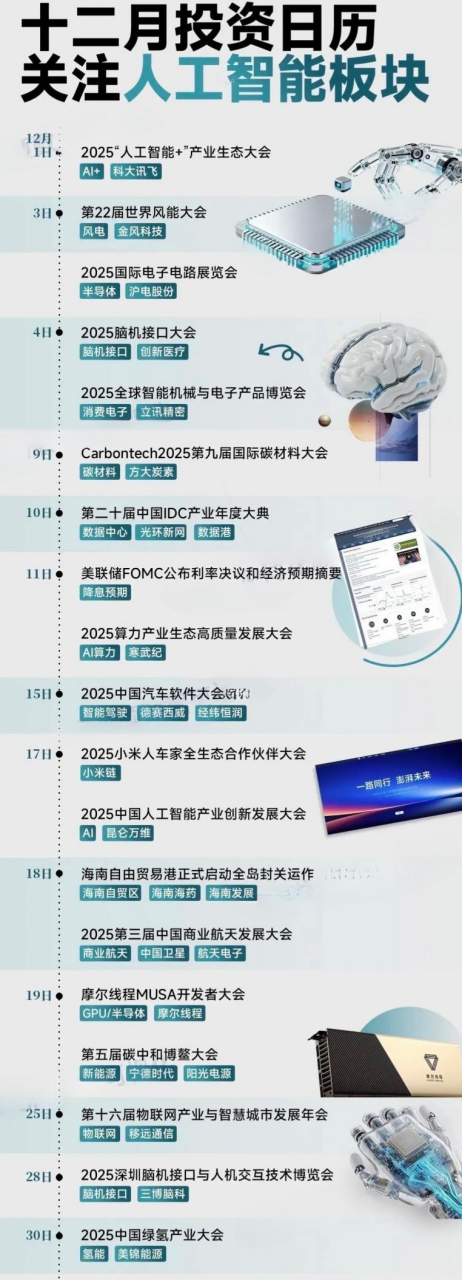 十二月系列产业大会集中展示前沿技术,如脑机接口的临床进展、三折折叠屏的良率、绿氢的制取成本、国产GPU的生态建设等。若大会呈现的关键参数(如脑机接口信号精度、折叠屏铰链寿命)或商业化时间表(如绿氢平价节点)低于市场预期,相关前期估值已大幅提升的板块(脑机接口、折叠屏、氢能、国产算力)可能面临剧烈的“预期差”回调。