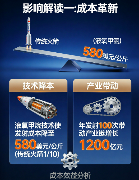 朱雀三号采用的液氧甲烷发动机技术,使单次发射成本从6200美元/公斤降至580美元/公斤,接近SpaceX猎鹰九号水平。按年发射100次计算,预计可带动卫星制造、地面设备等产业链规模增长1200亿元。