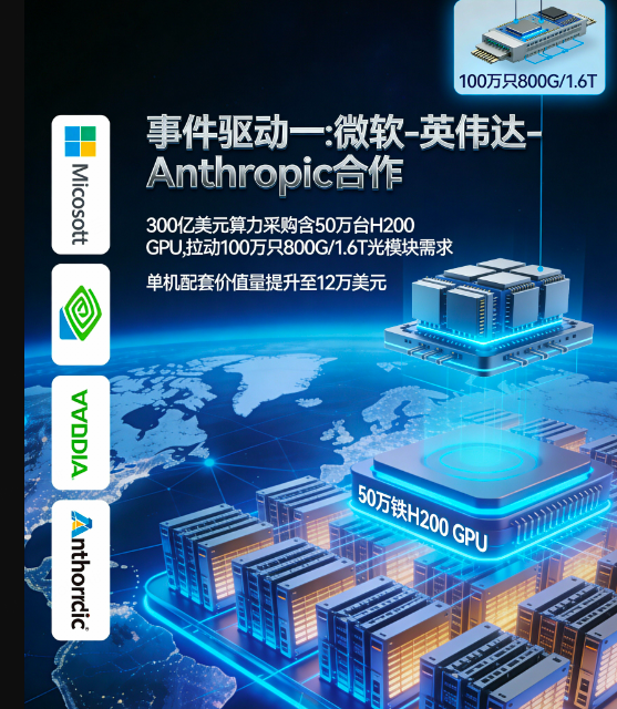 - 采购规模达300亿美元,包含50万台H200 GPU及配套光模块 -