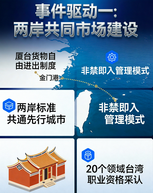 政策突破点: - 对台商投资企业实行“非禁即入”管理模式 - 探索厦金、厦马经贸合作区建设,实施特殊税收政策 - 扩大台湾职业资格采认范围,已覆盖建筑、医疗等20个领域
