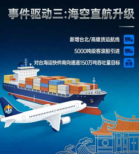 数据测算: - 厦门港对台集装箱吞吐量预计从2024年350万标箱增至2026年500万标箱 - 对台直航货运量年增速将达25%,带动相关企业营收增长30%以上 - 跨境电商物流成本降低15-20%,促进业务量爆发式增长