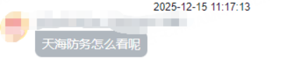 2025/12/15 19:08:43有学员问天海防务该怎么看,