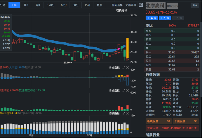 北摩高科 002985(五绝一买战法)