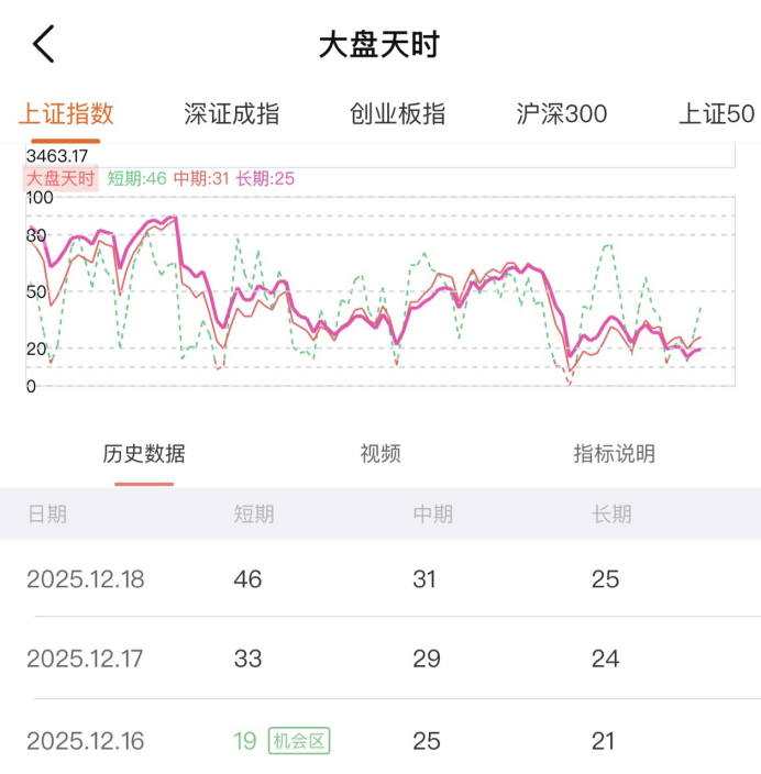 今天上证指数冲高回落,收出一根小阳线。短线情绪指标从33上涨到46,短线情绪继续回暖。中期情绪指标从29升到31,长期情绪指标从24回升到25。短线情绪回暖明显,中长期情绪指标略微提升,市场整体情绪平稳。