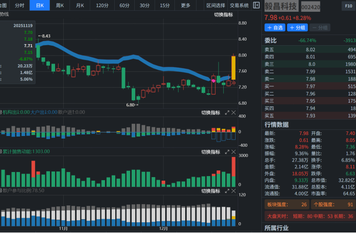 个股基本面亮点:公司冷却液获理想汽车定点并批量供应,同时配套金风科技、富士康、中达电子等风电、储能、电子冷却场景,新能源业务边界持续扩大
