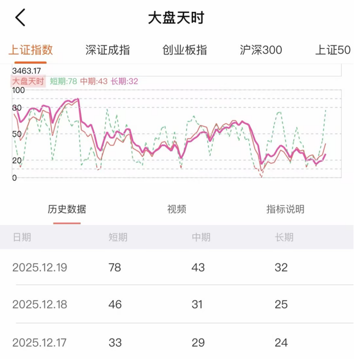 今天上证指数继续上攻,又收出一根小阳线。短线情绪指标从46来到78,短线情绪大幅回暖。中期情绪指标从31涨到43,长期情绪指标从25升到32。三大情绪指标继续拐头向上,短线情绪指标今天涨幅较大,下周要注意情绪回调。三大指数今日同步上涨,上证指数又来到30日均线下方,深成指也受30日均线压制冲高回落,创业板指稍强还站在5日线上方。
