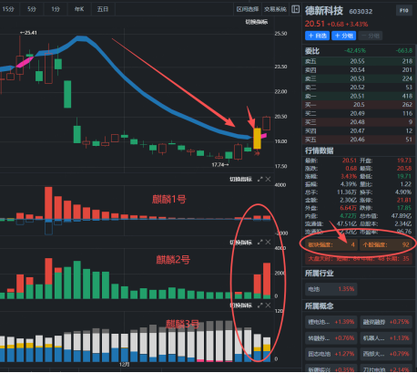 符合【四维共振】是前提,当前德新科技连【四维共振】都不符合,那就更不符合【五绝战法】的条件了。