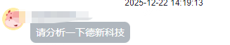 2025/12/22 17:50:02今天有学员让老师帮助分析一下德新科技,看能不能跟进。