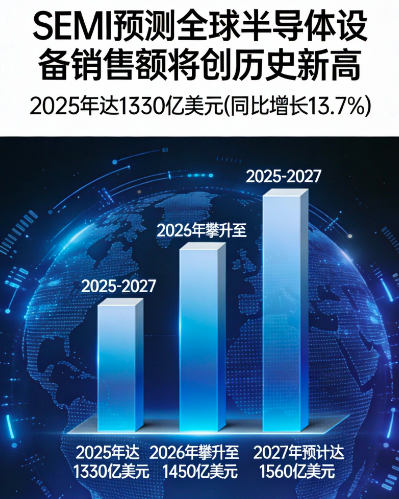 SEMI在12月发布的年度报告中明确指出,2025年全球半导体制造设备(WFE)市场规模将达到1330亿美元,这是该行业首次突破1300亿美元大关。