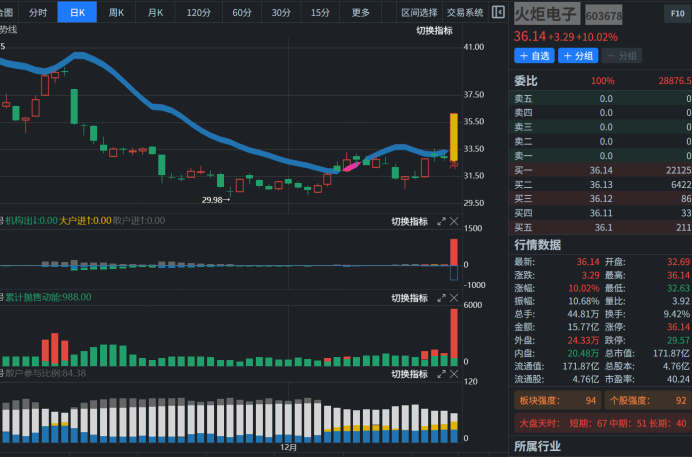个股基本面亮点:司正积极拓展商业航天、低空经济供应链,已参与部分客户在商业航天领域的产品配套。 公司主营陶瓷电容器、钽电容器、超级电容器等元器件,产品用于航空、航天、船舶及5G通信、新能源等高端领域
