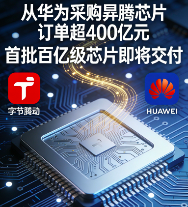 据微信公号消息,字节2026年从华为采购的昇腾芯片订单总额将超400亿元,首批百亿级芯片即将交付。该消息在周末发酵,引发市场广泛关注。