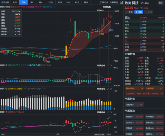 该股股价从11月21日阶段波段见高点72.50以来,开启震荡向上行情;期间有1个向上拐点K线和1个长阳爆点K线形态,短期有创新高,实现三期共振向上;板块强度78个股强度97;结合麒麟指标6号连续红柱,表明得到主力资金的认同且实现高度控盘特征;3号显示机构持仓比例6成;4号显示超资频繁流入;盘后预选内参案例作为教学分享演练,不做直接推荐,同时新手建议学员为主。