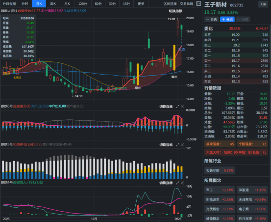 该股股价从11月21日阶段波段见低点14.30以来,开启一个强震荡向上行情;期间有2个长阳爆点K线形态,短期有再度走强特征,实现三期共振向上;板块强度74个股强度85;结合麒麟指标6号红柱,表明得到主力资金的认同且实现相对控盘特征;3号显示机构持仓比例5成;4号显示超资频繁流入;盘后预选内参案例作为教学分享演练,不做直接推荐,同时新手建议学员为主。