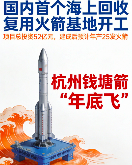 国内首个海上回收复用火箭产能基地在杭州市钱塘区开工,项目总投资52亿元,建成后预计将具备年产25发火箭的规模化制造能力,并满足火箭回收后快速检测、维修与复用的条件。“杭州钱塘箭”预计今年年底首飞。