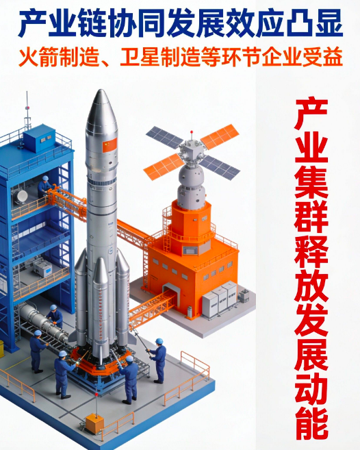 商业航天与军工行业的发展将带动产业链上下游企业的协同发展,包括火箭制造、卫星制造、军工电子、航空航天材料等多个环节。相关企业将通过技术创新、产业合作等方式,实现资源共享、优势互补,共同推动产业发展。