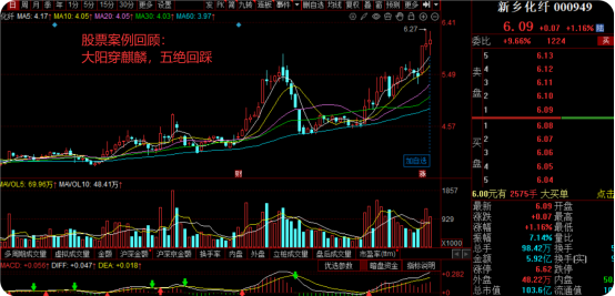 案例回顾:新乡化纤000949大阳穿麒麟,五绝回踩