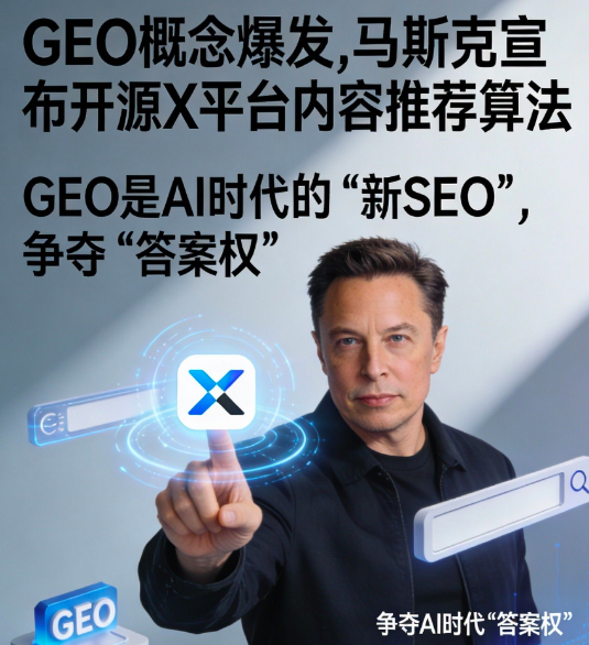 • GEO概念(生成式引擎优化):马斯克1月10日宣布,一周内开源X平台内容推荐算法,覆盖自然内容与广告推荐代码,后续每四周更新,被解读为“布局GEO”。GEO是AI时代的“新SEO”,通过优化内容结构、数据标记,让品牌优先被AI大模型引用,争夺“答案权”,天下秀、省广集团等营销企业率先受益;